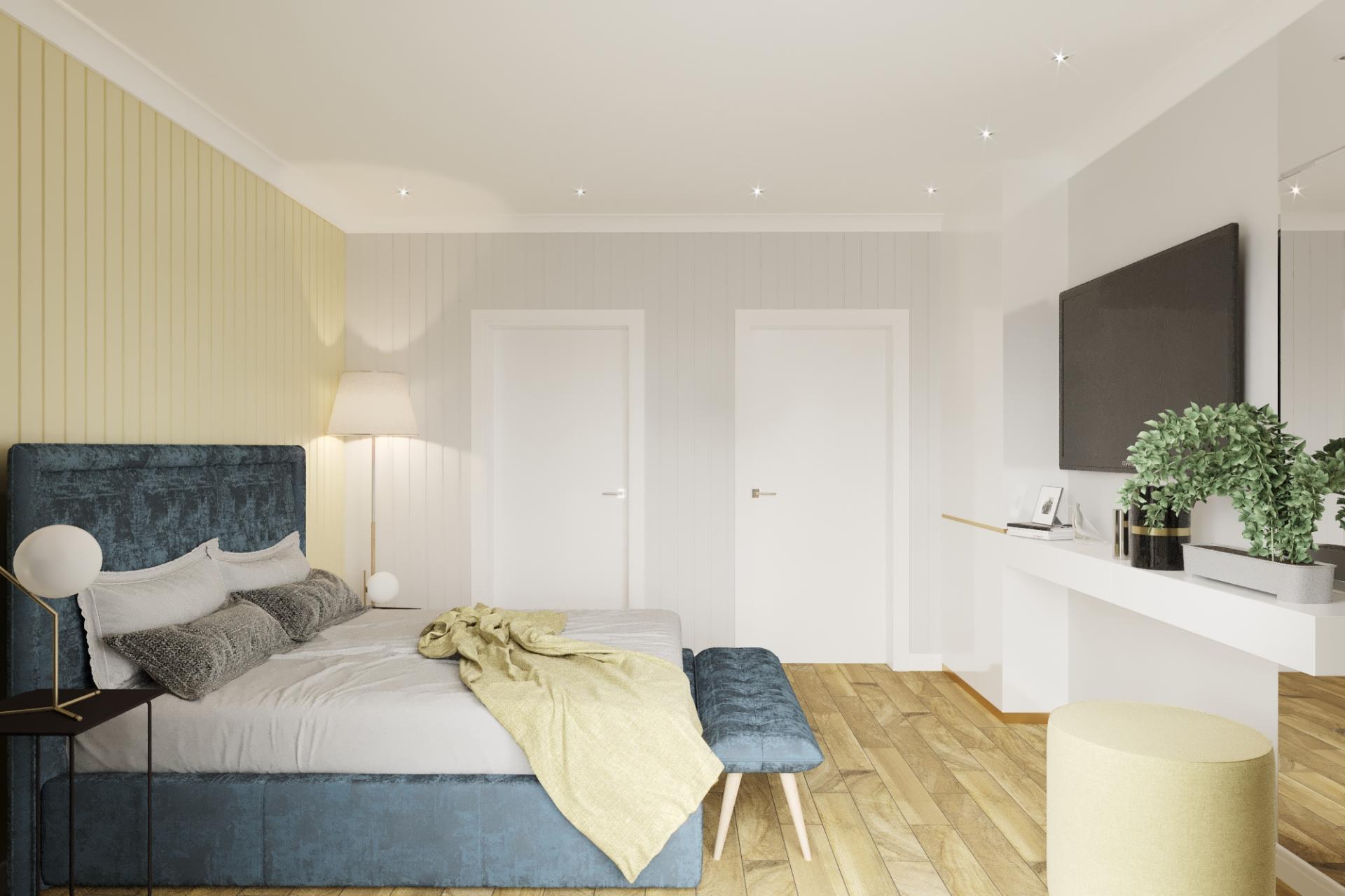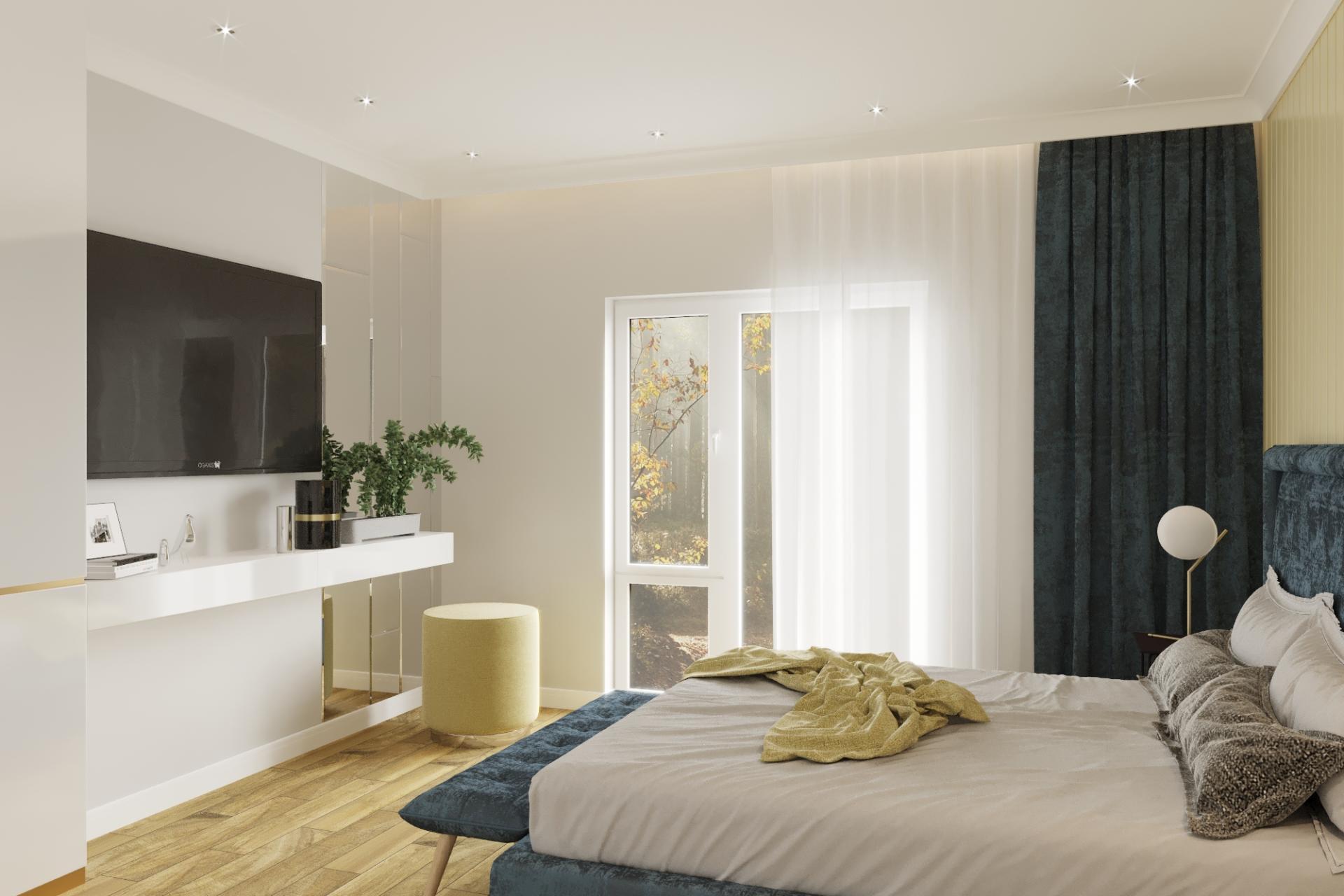Ниша под гардеробную в хозяйской спальне позволит установить большой шкаф для хранения одежды, одеял и постельного белья.