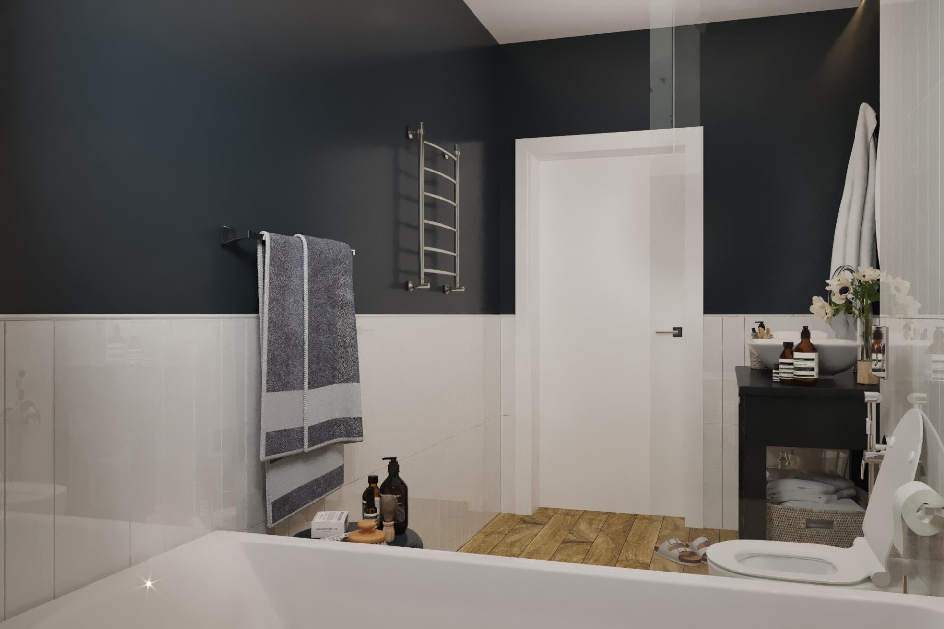 Водоснабжение: монтаж встраиваемого коллекторного шкафа (Stout), разводка труб из сшитого полиэтилена c кислородным слоем Pex-A, монтаж коллекторов ХВС и ГВС (Luxor), установка водорозеток (Stout). Опрессовка и испытание системы критическим давлением.