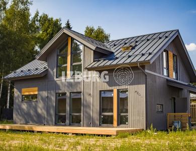 Дом для тех, кто хочет получить максимум удобств от одноэтажного проекта. Он полон интересных решений, которые работают на комфорт жильцов. Подходит для семьи из 5 человек. Строится по технологии Prefab – изготавливается на заводе и доставляется на участок в виде готовых панелей. Дом представлен с двумя видами наружной отделки: имитация бруса и штукатурка в комбинации с планкеном.