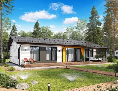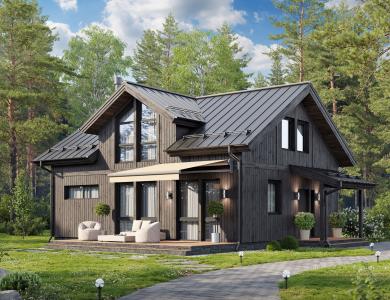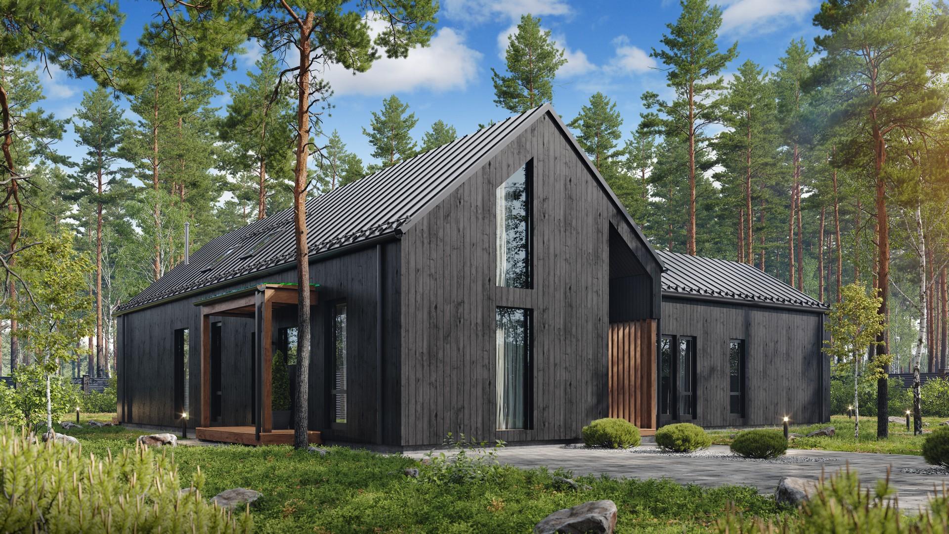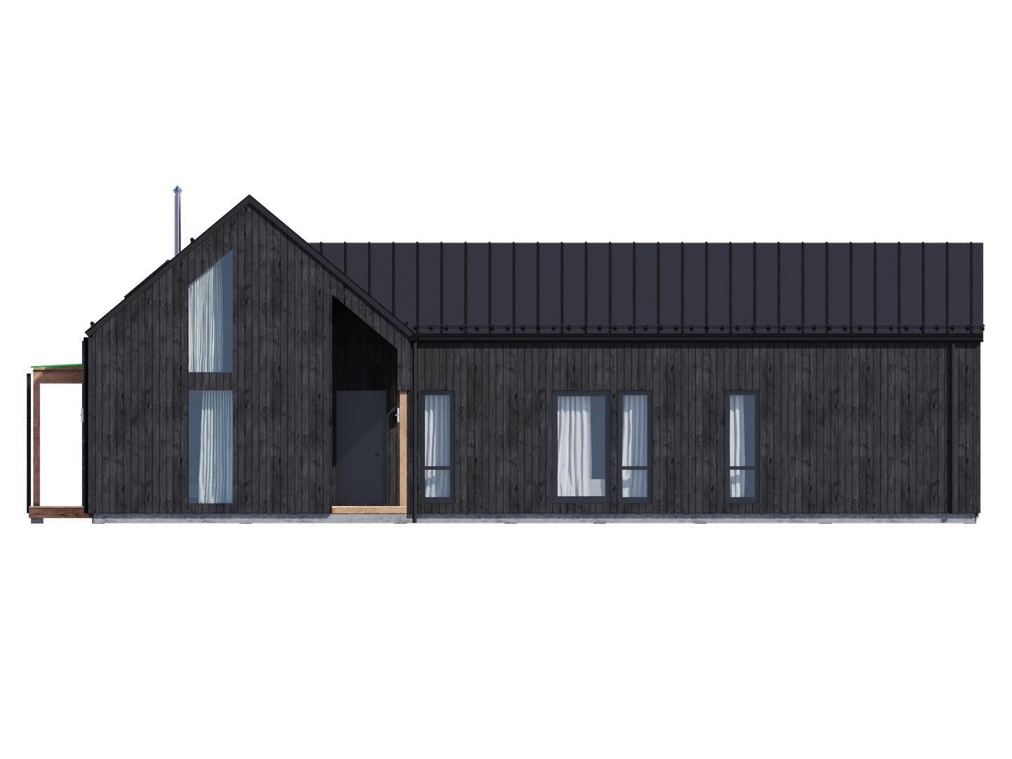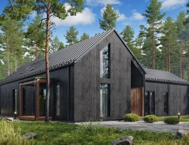 Комфортный дом в стиле барн-хаус, который сегодня находится на пике популярности. Отличный вариант для ценителей современного дизайна. Строгий минималистичный фасад и панорамные окна станут поводом влюбляться в этот дом снова и снова. Подойдет для семьи из 4 человек.